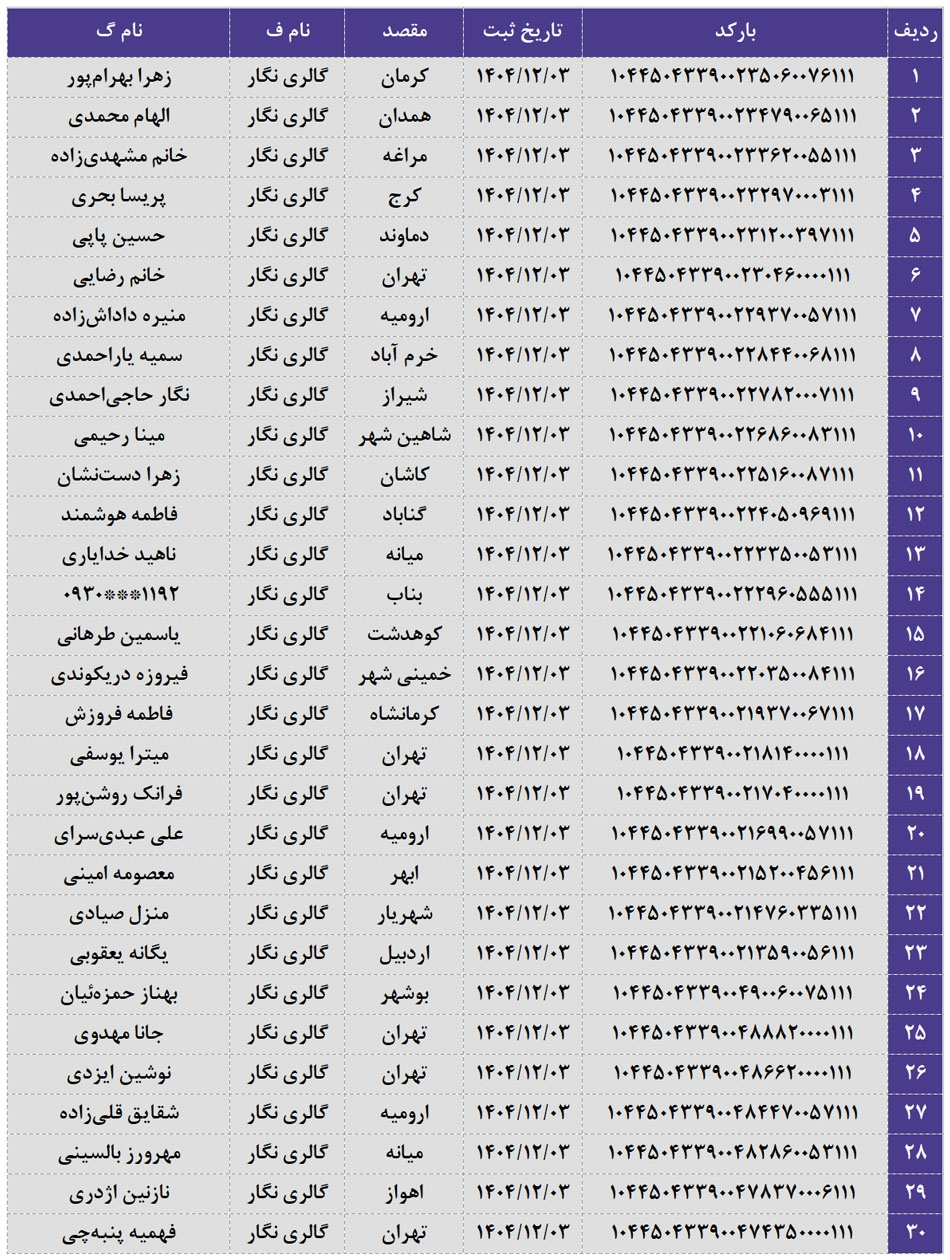 کدهای رهگیری 03 اسفند 1404