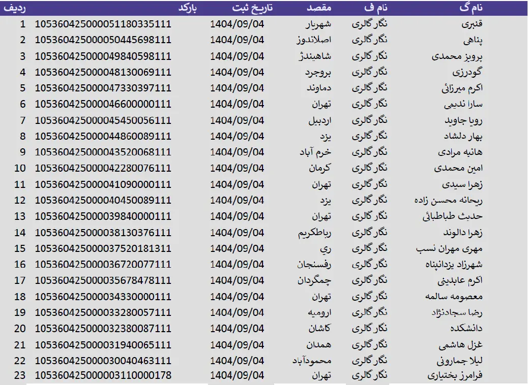 کدهای رهگیری 04 آذر 1404