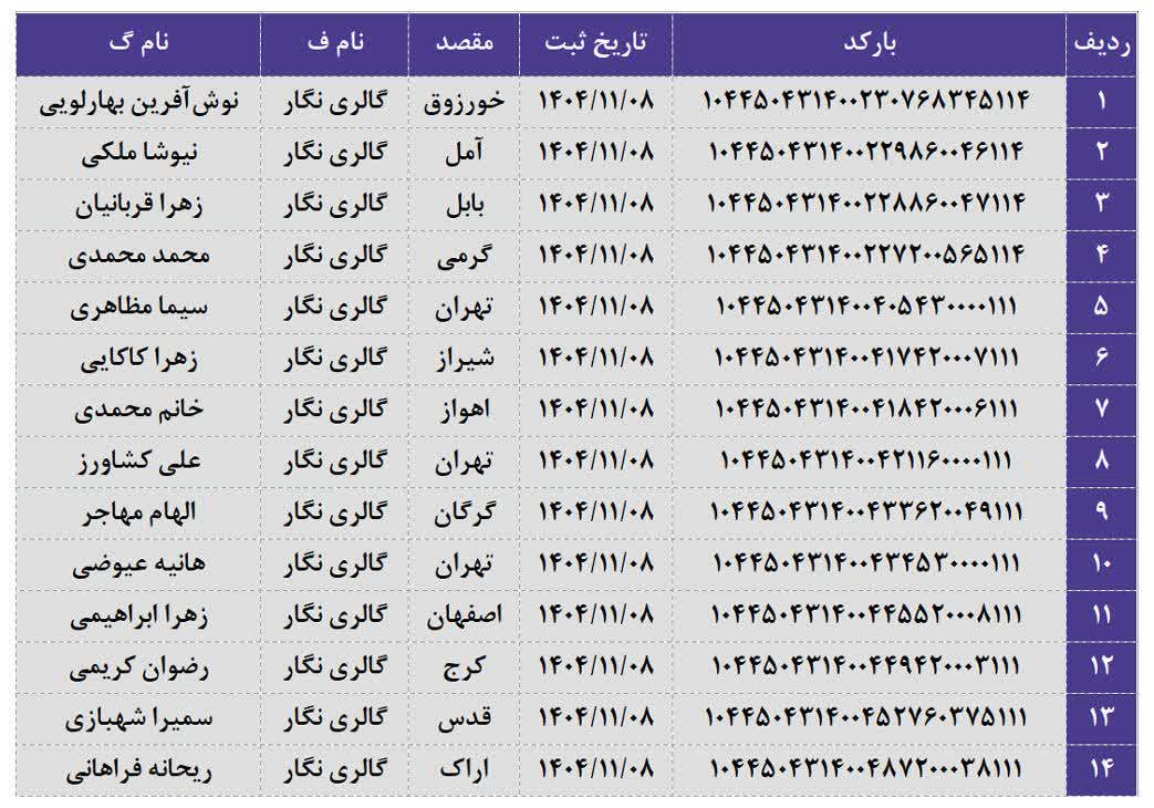 کدهای رهگیری 08 بهمن 1404