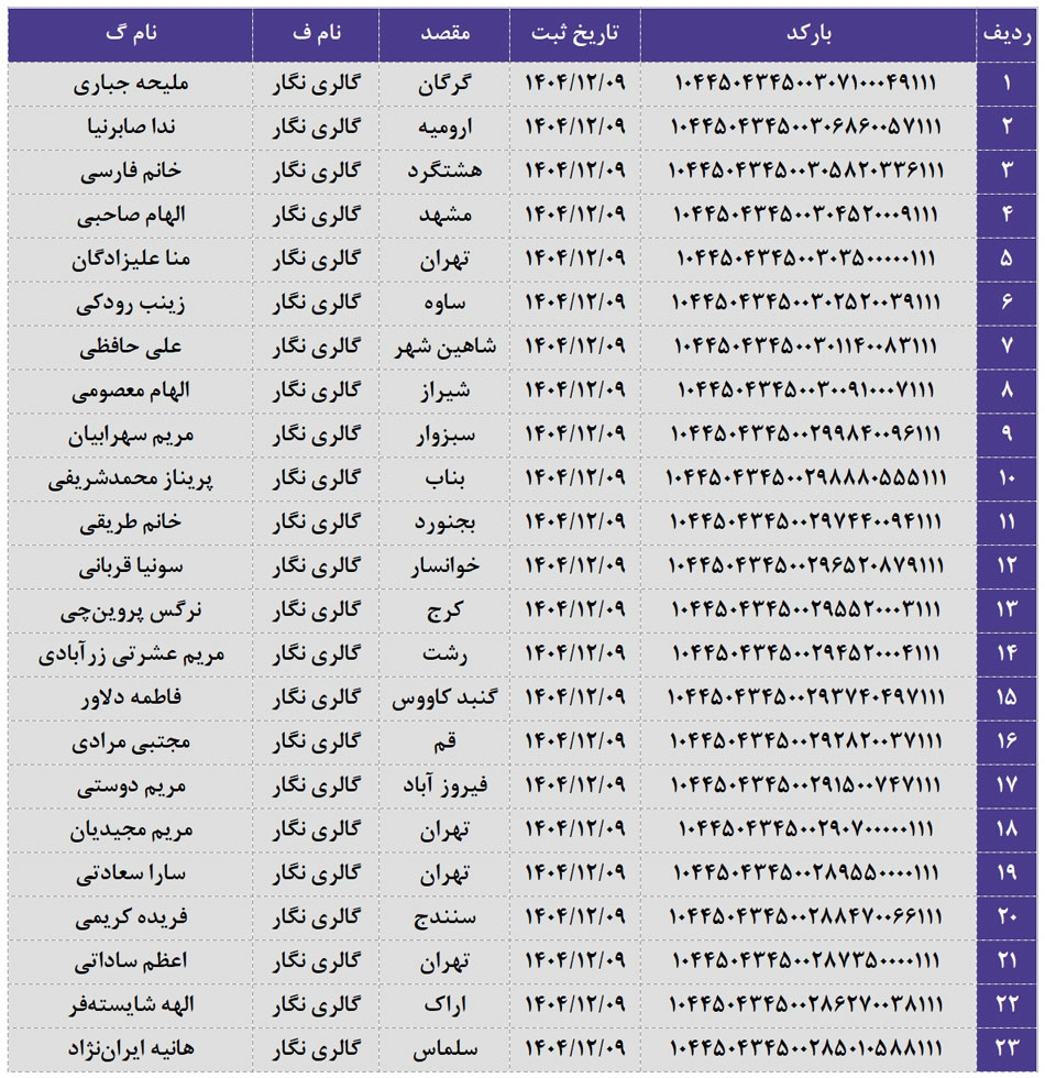 کدهای رهگیری 09 اسفند 1404