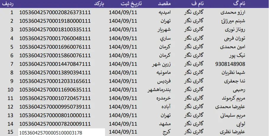 کدهای رهگیری 11 آذر 1404