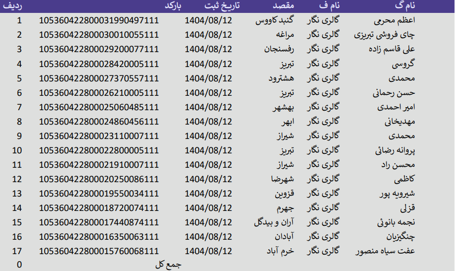 کدهای رهگیری 12 آبان 1404