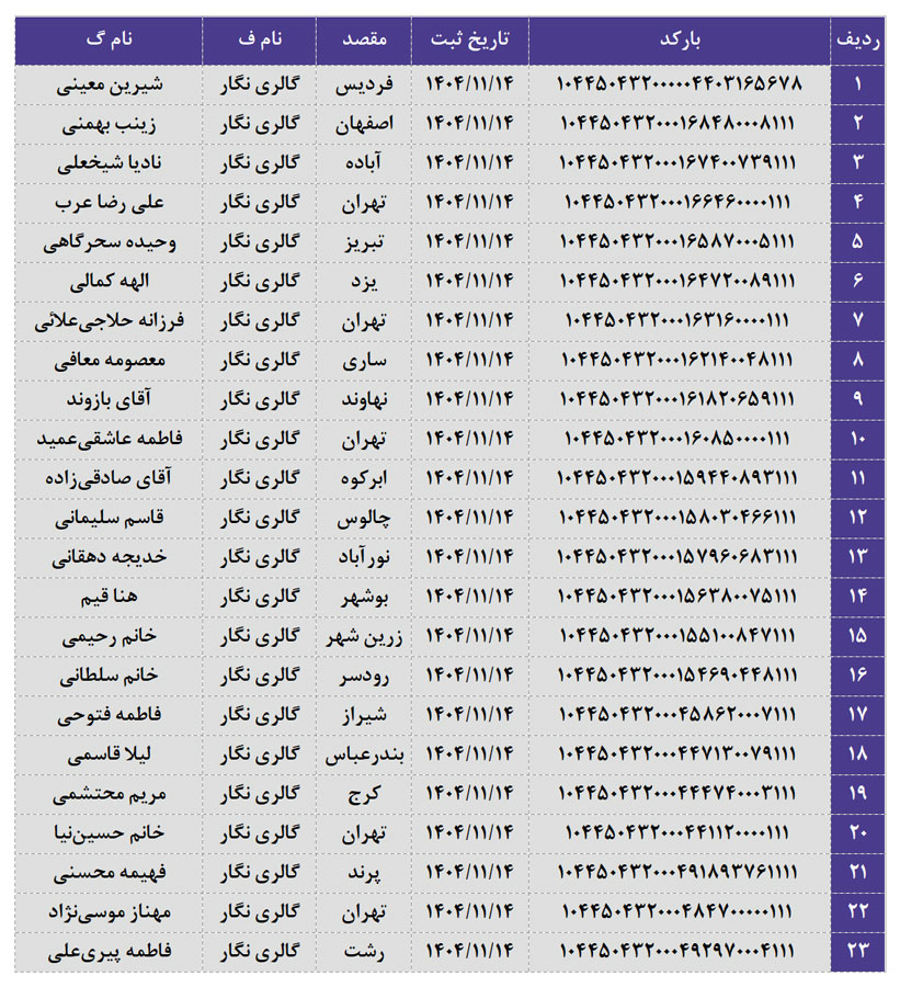 کدهای رهگیری 14 بهمن 1404
