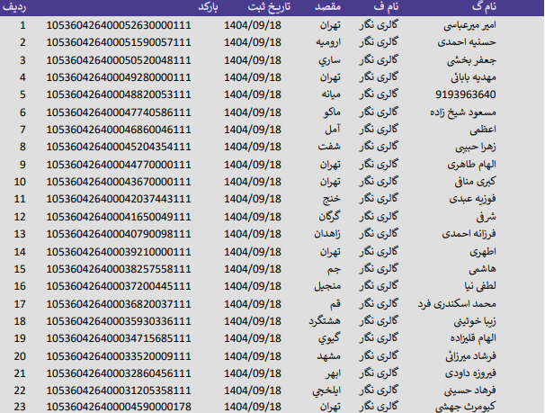 کدهای رهگیری 18 آذر 1404