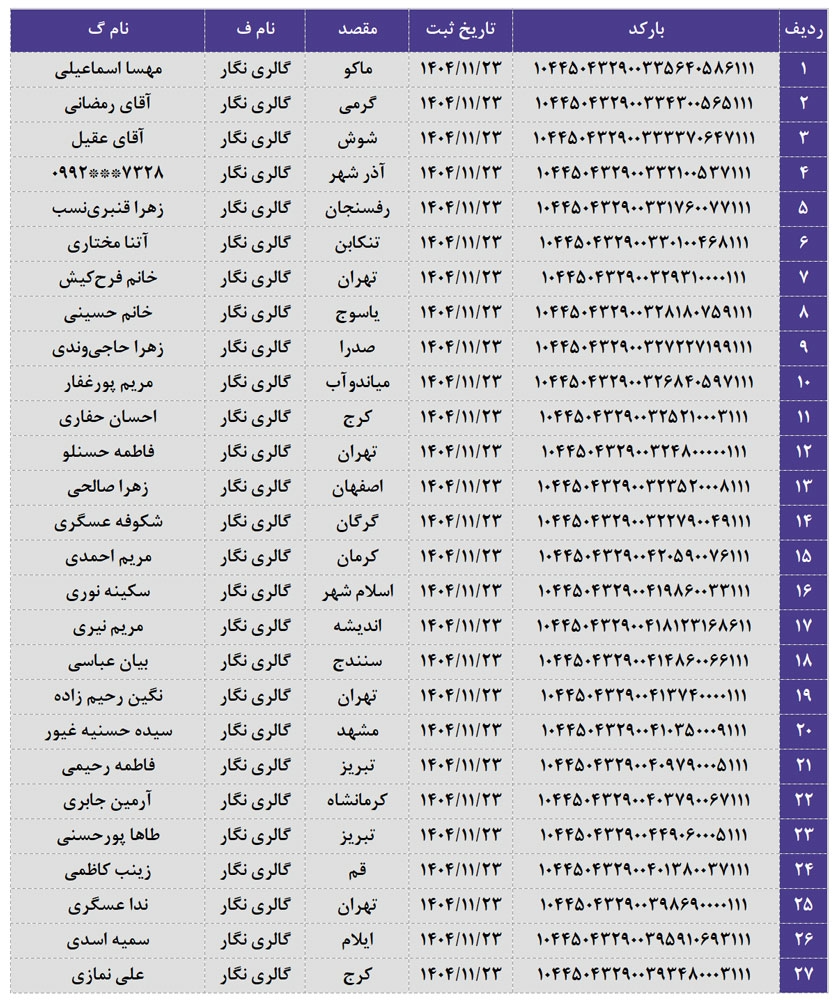 کدهای رهگیری 23 بهمن 1404