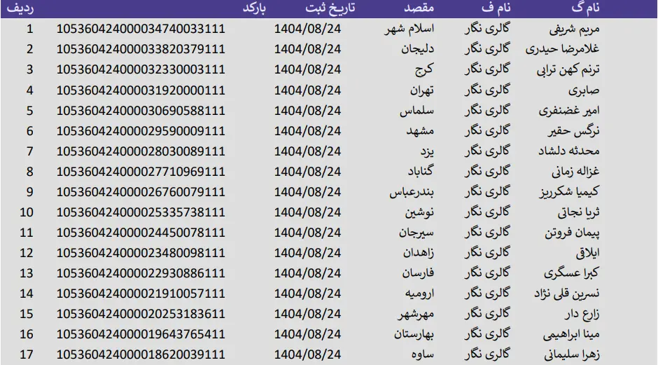 کدهای رهگیری 24 آبان 1404