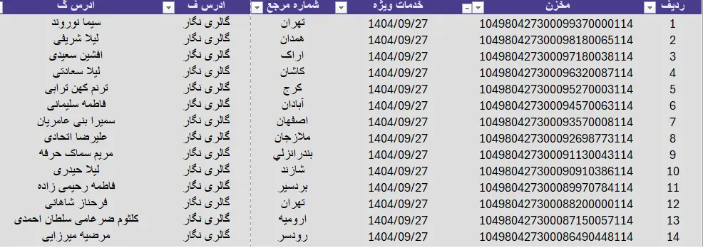 کدهای رهگیری 27 آذر 1404