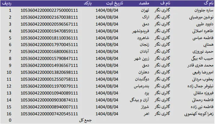 کدهای رهگیری 4 آبان 1404