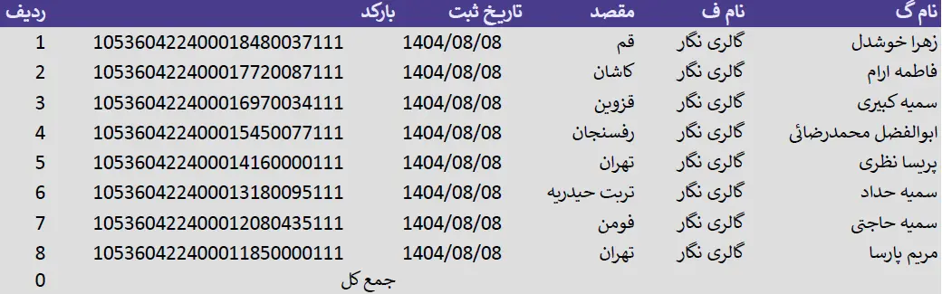 کدهای رهگیری 8 آبان 1404