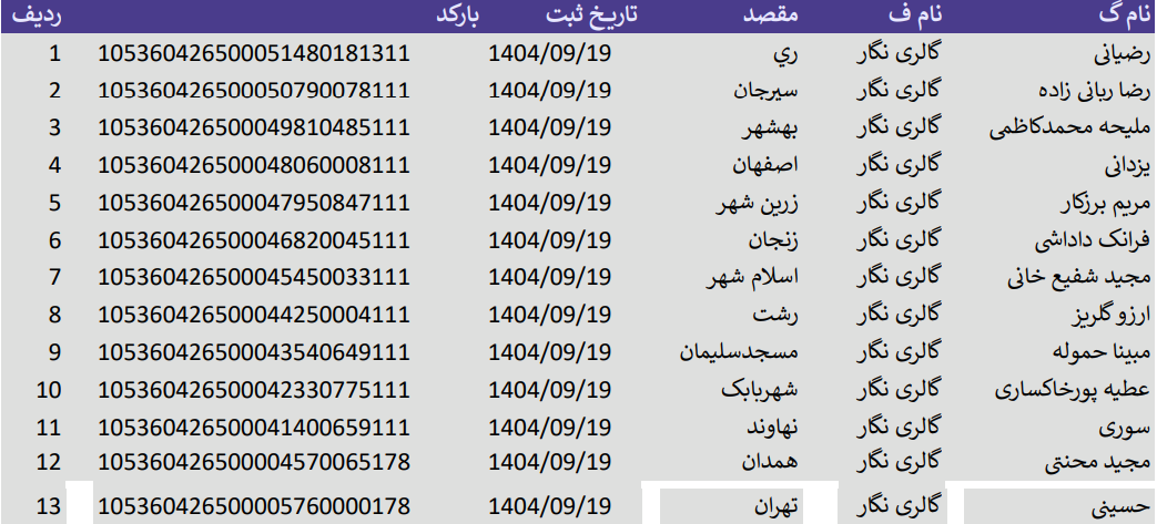 کد های رهگیری 19 آذر 1404