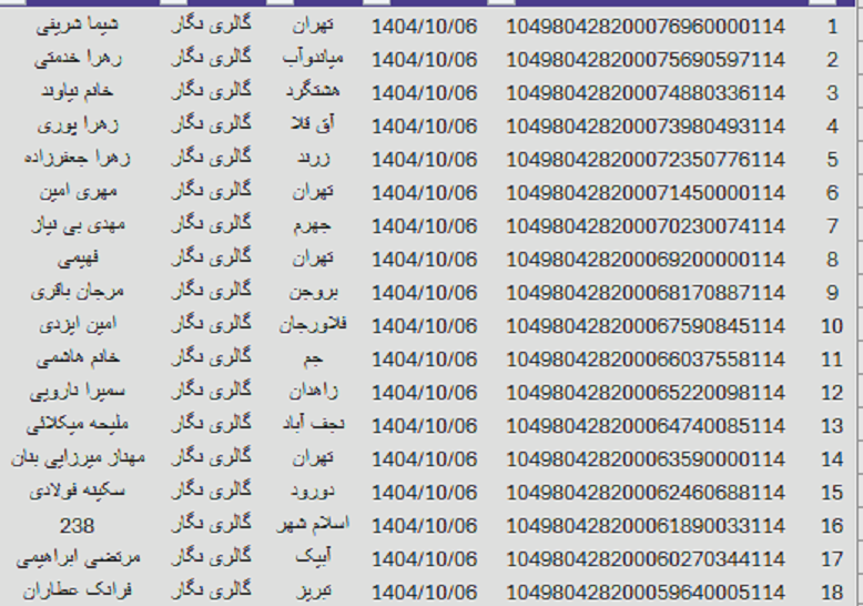 کد های رهگیری 6 دی1404