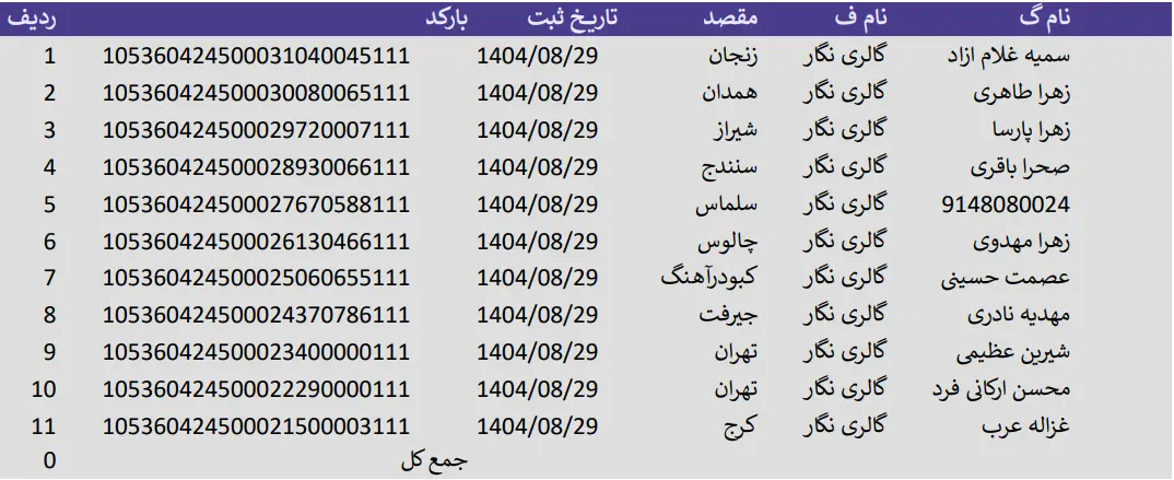 کدهای رهگیری 29آبان 1404
